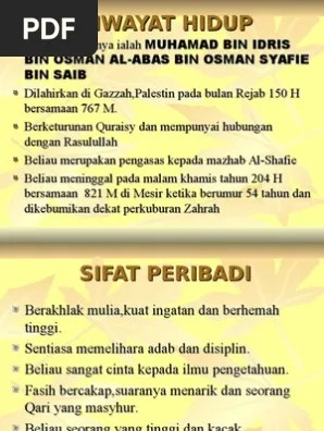 Al imam as syafie r h ppt powerpoint sifat peribadi imam syafie. Ada yang mengatakan pada malam beliau dilahirkan, imam abu hanifah(imam hanafi) meninggal dunia.
